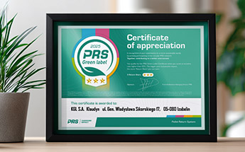 KGL kolejny rok z rzędu uzyskał certyfikat PRS Green Label, potwierdzający aktywne uczestnictwo spółki w systemie zwrotnego obrotu paletami przemysłowymi PRS.