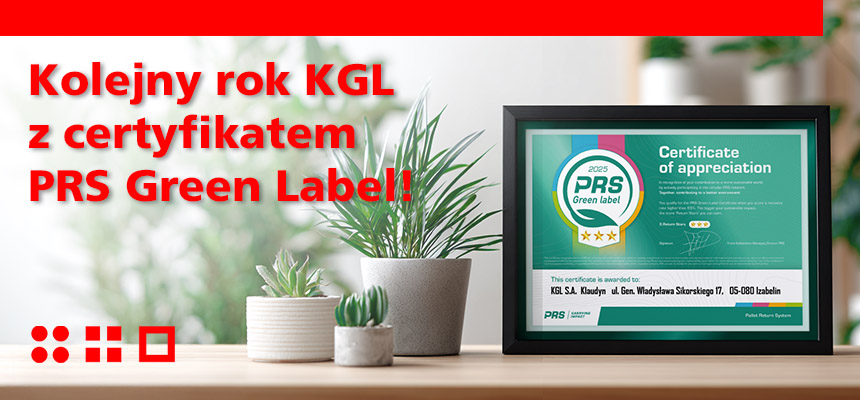 KGL kolejny rok z rzędu uzyskał certyfikat PRS Green Label, potwierdzający aktywne uczestnictwo spółki w systemie zwrotnego obrotu paletami przemysłowymi PRS.